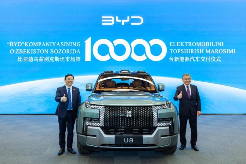 2024年1月25日,烏茲別克斯坦總統米爾濟約耶夫率代表團訪問比亞迪全球總部,王傳福董事長代表比亞迪向米爾濟約耶夫總統交付仰望U8,該車型也成為總統的座駕。在訪問過程中,米爾濟約耶夫總統現場觀看刀片電池針刺實驗、仰望U8原地掉頭功能演示,對比亞迪的核心技術實力給予高度評價。