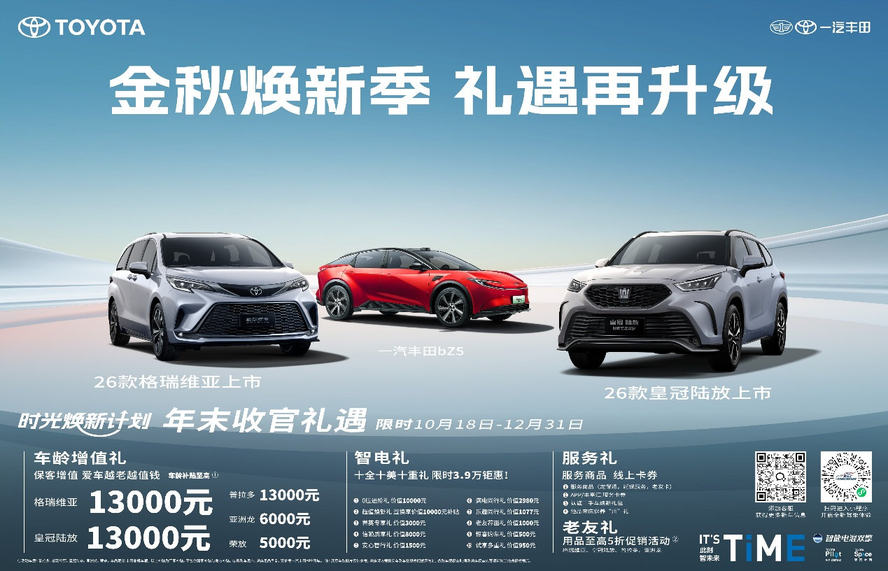這個金秋,一汽豐田以誠意大禮和兩款重磅車型的煥新上市,將先進(jìn)科技與人文關(guān)懷融入到用戶生活的每個細(xì)節(jié),為用戶提供了美好出行的新想象。誠如2026款格瑞維亞的口號,一汽豐田也正與用戶,從我們的家到更好的家,一起創(chuàng)造美好,一起駛向更值得期待的新遠(yuǎn)方。