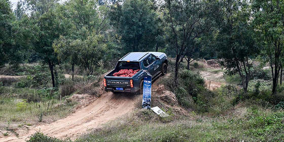 「拉三噸 不翹頭」挑戰農產裝載環節,星際L皮卡額定載重提升至685kg的強大裝載能力得到充分展現。滿載農產品的車輛在賽道上依然"身輕如燕"般穿梭,印證了其出色的承載性能。