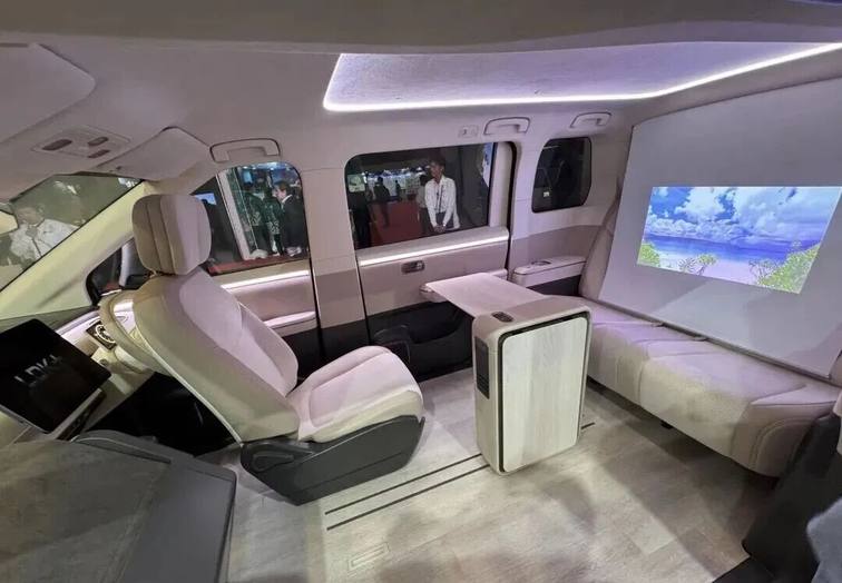 在2024年9月的技術展示會上,夏普首次推出了電動概念車型“LDK+”,這款車由夏普與富士康母公司鴻海集團及日本初創電動車公司FoloFly合作開發,夏普將其稱為“只有家電制造商才能打造的客廳式座艙”。概念車配備了65英寸巨屏,可把車輛變成沉浸式家庭影院或兒童娛樂房,甚至還能用于遠程辦公。更夸張的是,概念車內置了蓄電池和太陽能板,能夠連接家庭電力系統,在家庭遭遇停電時充當“超大號充電寶”為住宅供電。為實現量產,新版概念車已有所妥協,舍棄了原型車上那塊65英寸巨屏,改為在后排座頂安裝投影儀和可收納的幕布屏。