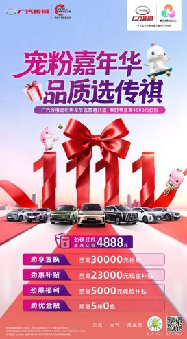 此外,傳祺同步上線雙十一專項福利,11月7日-11 月16日,下訂傳祺任一車型即可參與抽獎,贏取至高4888元限時購車紅包,讓家庭購車更具性價比,輕松解鎖幸福出行。
