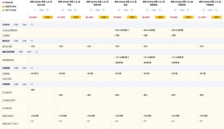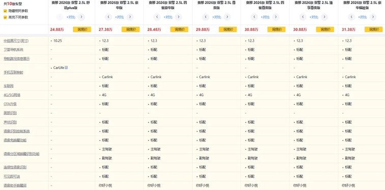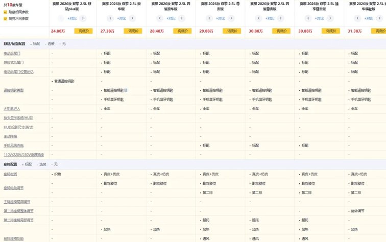 2026款豐田賽那選購指南:10款配置如何權衡性價比