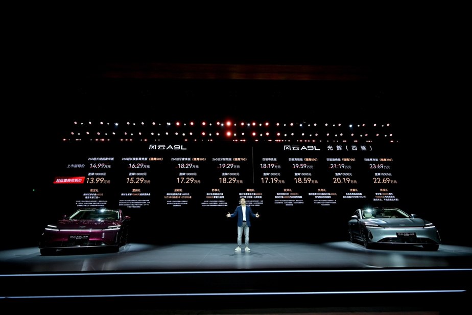 2025年11月15日,"進化"風云A9L光輝(四驅)全球上市發布會在重慶廣陽島國際會議中心隆重舉行,本次上市共推出四款版型,正式售價為17.19萬元起,共推出四個版本車型,其中四驅尊貴版售價17.19萬、四驅高能版(獵鷹500)售價18.59萬、四驅巔峰版(獵鷹700)售價20.19萬、 四座尊享版(獵鷹700)售價22.69萬。并同步推出"九大購車權益",涵蓋高定、置換、金融、舒享、尊馳、馭風、充電、流量、質保多重禮遇,為中國豪華汽車市場再次立下全新標桿。