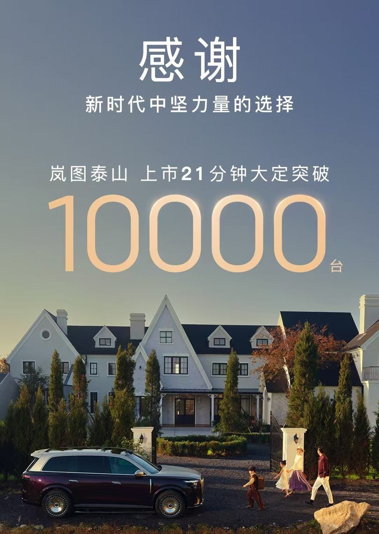 嵐圖泰山的上市,不僅是對豪華汽車舊標準的突破,更是中國品牌邁向全球豪華舞臺的重要標志。未來,嵐圖將以泰山為核心,聯動夢想家、追光L形成“三旗艦”布局,以技術創新、東方美學與極致體驗為支撐,加速開啟中國主導的豪華汽車新時代。12月,嵐圖追光L將正式上市,持續壯大豪華產品矩陣,助力中國汽車產業向全球價值鏈頂端攀登。