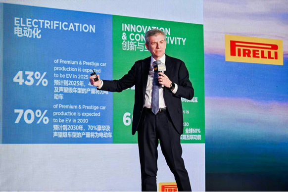 同時(shí),倍耐力亞太區(qū)首席執(zhí)行官馬贊寧(Andrea Maganzani)也在現(xiàn)場詳細(xì)闡述了品牌核心價(jià)值與發(fā)展戰(zhàn)略,同時(shí)結(jié)合行業(yè)趨勢(shì),深度解讀市場潛在機(jī)遇。倍耐力亞太區(qū)首席技術(shù)官Francesco Giuliano則圍繞倍耐力產(chǎn)品矩陣與創(chuàng)新技術(shù)Cyber?,以及工廠在可持續(xù)方面的實(shí)踐成果展開分享。
