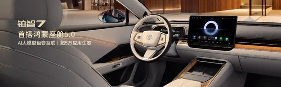 鉑智7則用“豪華新三件”——雙腔空懸、激光雷達智駕和鴻蒙座艙,正面打入智能電車核心戰區,證實合資不僅有好電車,還有更好的豪華電車。其中,對華為Drive ONE電驅、鴻蒙座艙5.0、Momenta R6大模型智駕、小米生態等中國本土頂尖技術資源的整合,做到了"中國智電技術+豐田全球技術底蘊"的雙向賦能,儼然就是合資最好的電車。這也讓鉑智7肩負著開拓純電新局和樹立“合資豪華電車”新旗幟的使命。