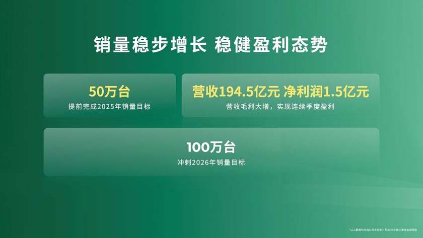 零跑汽車近期交出了一份亮眼的成績單:2025年第三季度財報顯示,公司凈利潤持續為正,達1.5億元,已連續實現季度盈利。實現營業收入194.5億元,較2024年同期增長97.3%;毛利率為14.5%,同比大幅提升;同時,零跑汽車在手資金充裕達339.2億元,并保持正向經營現金流與自由現金流。自今年3月以來,零跑已連續8個月穩居中國新勢力品牌月銷冠軍,10月更是突破7萬臺,再次刷新中國新勢力月銷新高。同時,1-10月累計銷量突破50萬輛,提前完成年度目標。此外,零跑以4.4萬臺的出口量領跑新勢力出海,主攻德國、法國、意大利等歐洲市場。