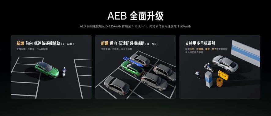 而HyperOS 1.11 系列除了行車能力的大幅增強,還包含安全輔助功能的提升,比如新增了緊急轉向輔助AES 與 前向低速防碰撞輔助L-AEB 和后向低速防碰撞輔助R-AEB 技術能力,可以提供更多方向、更廣速域、更全目標、更多場景的防碰撞輔助機制,保障行車安全。