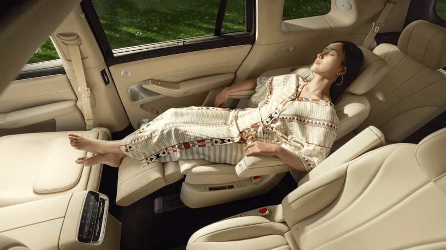 六座版堪稱“舒適三居”,前排935mm、二排900mm、三排840mm的乘坐空間徹底告別“第三排小板凳”尷尬,332mm的三排坐姿高度保障視野通透;純平地板與隱藏式滑軌設計,讓老人孩子進出第三排從容不迫。更令人驚嘆的是百變模式:一排與二排可拼成1950mm休憩大床,三排折疊后與后備箱形成1437mm床位,滿足長途休整或露營休憩需求。