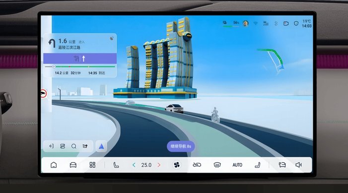 基于強大算力,深藍L06行業首發四圖融合實景車道級導航。并依托15.6英寸2.5K超高清向日葵屏與50英寸AR-HUD全息式增強現實系統,將基礎導航、車道級導航、SR渲染與環境重構融為一體,一屏顯示全部導航與駕駛輔助信息,真正實現 “不分屏、不分心” 的沉浸式導航體驗。