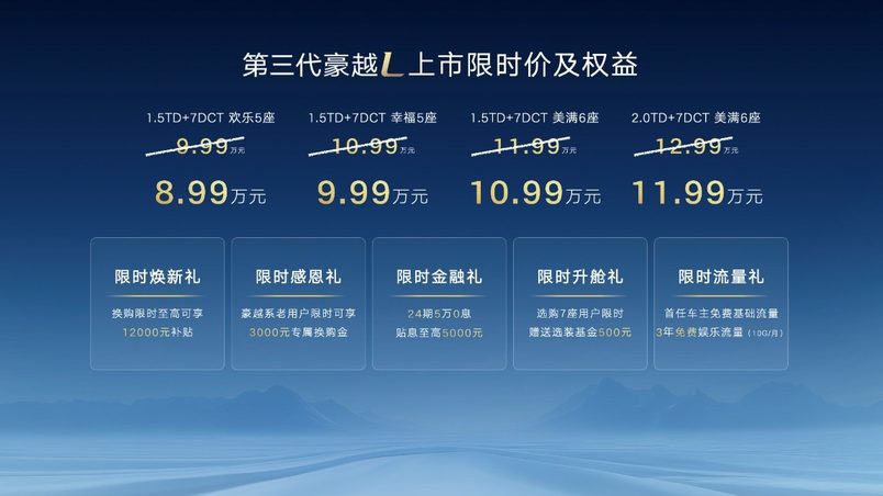 吉利第三代豪越L正式上市,上市限時價8.99萬元起