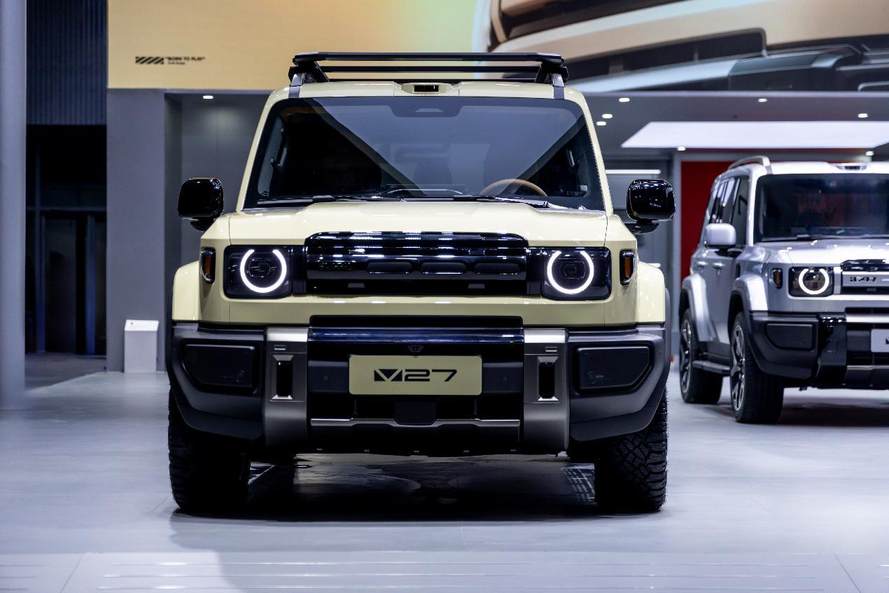 當(dāng)然,V27堅(jiān)守的背后,也蘊(yùn)含著深刻的實(shí)用主義與功能性考量。譬如極短的前后懸設(shè)計(jì),直接帶來了更大的接近角/離去角,實(shí)現(xiàn)更強(qiáng)的通過性;還原經(jīng)典硬派風(fēng)格的垂立車頭,則為駕駛者提供了更開闊的前方視野。同樣,將四輪盡可能推向四角,不僅在視覺上營造出穩(wěn)健扎實(shí)的姿態(tài),還為車輛帶來了更出色的行駛穩(wěn)定性和操控靈活性。真正經(jīng)典硬派設(shè)計(jì),也是美學(xué)價(jià)值與實(shí)用功能的完美統(tǒng)一。
