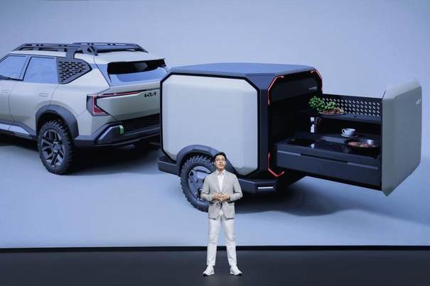 除了燃油車領域的重磅發力,起亞在電動化板塊也交出亮眼答卷。EV5 Weekender(探享者)的亮相,展現了品牌對戶外生活方式的深刻洞察。作為 Weekender 系列第四款車型,它延續 “對立統一” 設計理念,樺木色外飾搭配云杉藍內飾,柑橘綠點綴其間,完美銜接都市精致與自然野趣。升級后的 20 英寸全地形輪胎、抬高的離地間隙、可伸縮拖鉤,大幅提升越野性能;運動相機、車頂行李架、露營氛圍燈、可拆卸座椅與便攜桌等配置,讓車輛變身 “移動探索基地”。更貼心的是 “一鍵冒險” 功能,預設露營、徒步路線并規劃充電路線,真正實現 “說走就走的周末自由”,精準擊中熱愛戶外的年輕消費群體。