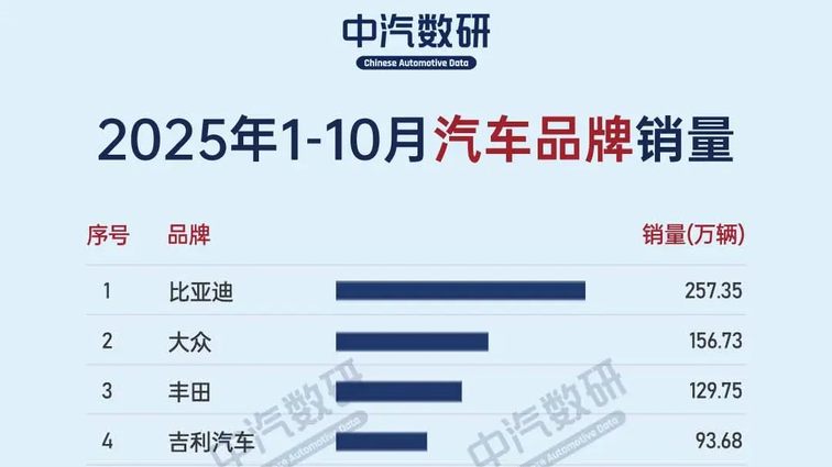 雖然,現在有很多關于比亞迪走勢的討論,但具體來看,2025年以品牌進行統計的汽車銷量冠軍,繼續握在比亞迪手中。