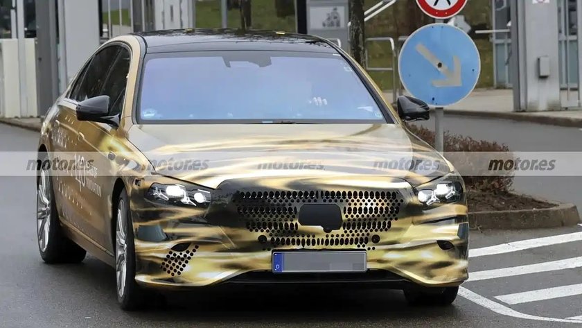直接看圖,可以發現新車的前臉采用了最新的設計風格,大燈內部融入了“三叉星”LED日行燈,這也是目前奔馳很多新車都有的元素,品牌辨識度非常高。格柵相較于現款似乎有了加大,內部還有非常多的孔洞,不過看上去有點密集,預計量產版會加入“三叉星”元素進行裝飾,并有望支持點亮。