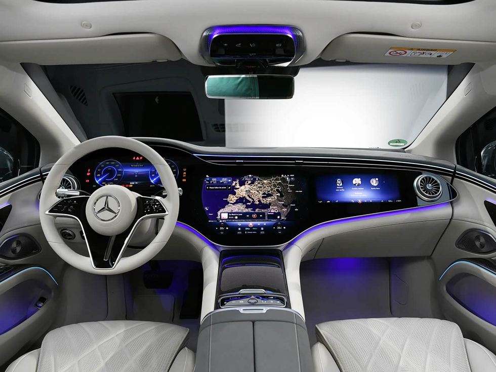 內飾方面能看到的信息不多,預計和奔馳EQS保持一致,所以筆者放一張奔馳EQS的內飾照供大家參考,它最大的看點就在于Hyperscreen三連屏設計,科技感毋庸置疑。