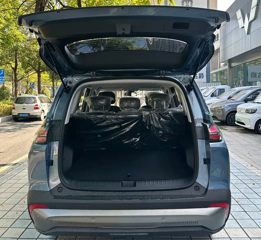 下面一張是后備廂開啟狀態(tài)下的照片,X軸和Y軸空間都很不錯,應(yīng)對家用足以。另外,圖片中似乎并沒有電尾門,不知道高配是否會有。