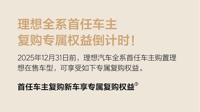 理想面向首任車主推出復購現金與積分并疊加“2025年內至高1.5萬元購置稅權益”,配合三年零息等金融方案,降低購車門檻。