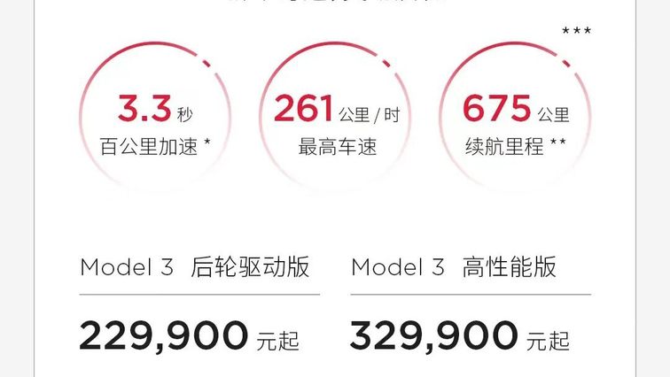 2023年1月6日,Model 3后驅(qū)版降至22.99萬元,降幅達3.6萬元。Model 3高性能版降至32.99萬元,降幅達2萬元。