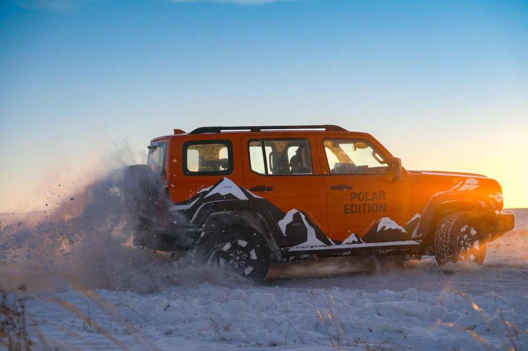 在坦克300素車可靠品質的基礎上,極地版進一步強化其稀缺身份和極地屬性。來自用戶投票與共創的“極地橙”車色、“極地榮耀”徽章與“極地鋒芒”拉花等稀缺元素,全部上車;可遠控的前風擋加熱、雨刮噴嘴加熱、AT全地形輪胎、電子遙控絞盤等用戶傾心的極境配置,一應俱全。通過在設計、裝備等維度的強化,極地版不僅延續了坦克300的硬核基因,更以縱橫全域的實力,持續引領越野潮流。