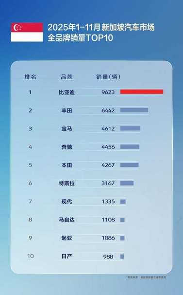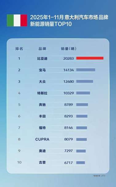 2025年1-11月,比亞迪在英國、德國、意大利、西班牙、奧地利、愛爾蘭、馬來西亞、土耳其、新加坡、泰國、中國等11個汽車核心國家市場,銷量已經全面超越特斯拉。憑借多元化產品矩陣,比亞迪精準契合了全球不同市場消費者的差異化需求。同時,通過推進自建滾裝船、本地化生產、構建完善的服務體系等一系列協同舉措,為其海外拓展提供了堅實支撐。在這些出海策略的有力推動下,比亞迪出海狂飆全球領跑。
