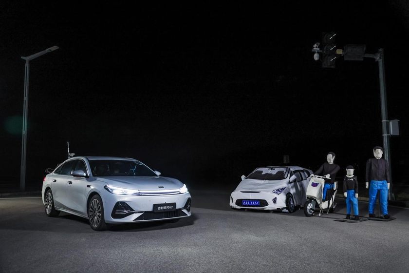 吉利銀河A7在前方有遮擋兒童橫穿場景中,以60km/h車速面對突然從兩車之間穿出的兒童假人,精準識別小目標并快速制動,穩(wěn)穩(wěn)剎停在安全距離外;在前方多人橫穿場景中,以80km/h車速準確識別不同大小行人目標,成功制動剎停未發(fā)生碰撞;在前車緊急剎車場景中,模擬高速路段90km/h跟車行駛并開啟ACC自適應(yīng)巡航功能,AEB自動緊急制動系統(tǒng)瞬間識別前車制動動作,平穩(wěn)完成減速剎停,未發(fā)生碰撞;在前方同向50%偏置靜止壓線車場景中,以50km/h車速遭遇前方50%偏置壓線車,瞬間捕捉到這一不易識別的靜態(tài)目標,立刻觸發(fā)制動指令并平穩(wěn)完成減速剎停;在前方遇靜止車場景中,以120km/h高速,AEB自動緊急制動系統(tǒng)第一時間發(fā)現(xiàn)停滯車并做出剎停動作,制動力度足夠,剎停后還保留常規(guī)安全距離;在前方遇靜止車(夜晚)場景中,低能見度下以100km/h車速,精準識別前方黑色靜止車并實現(xiàn)剎停;在前方二輪車橫穿(夜晚)場景中,夜間以45km/h車速面對橫穿二輪車,快速捕捉動態(tài)目標,成功規(guī)避了碰撞風險;在前車切出遇靜止車場景中,AES主動緊急避讓功能則在時速130km/h發(fā)現(xiàn)前車并線消失,前方出現(xiàn)障礙車后,能夠第一時間發(fā)現(xiàn)并通過主動變道實現(xiàn)合理避讓并穩(wěn)定駛離。