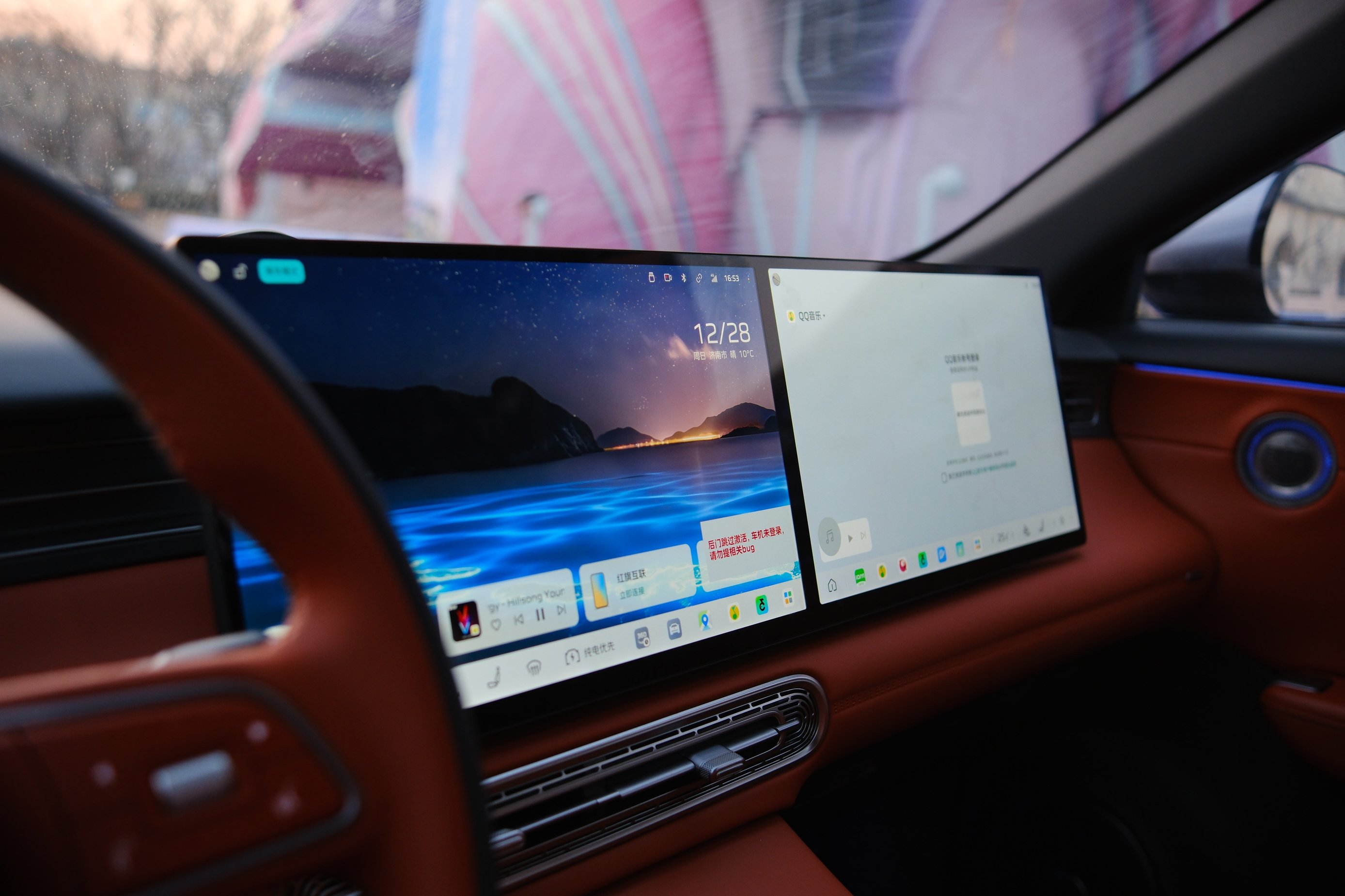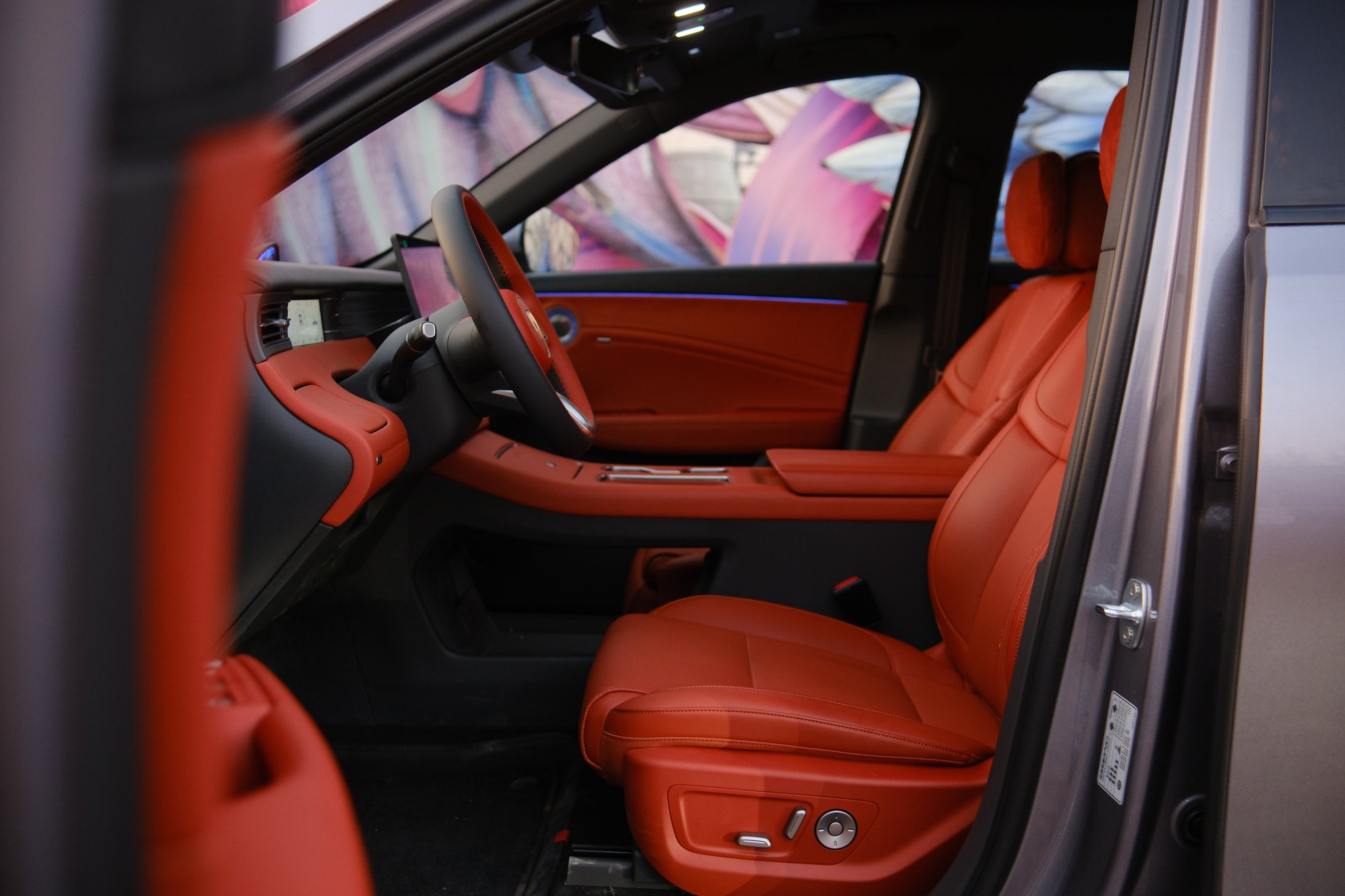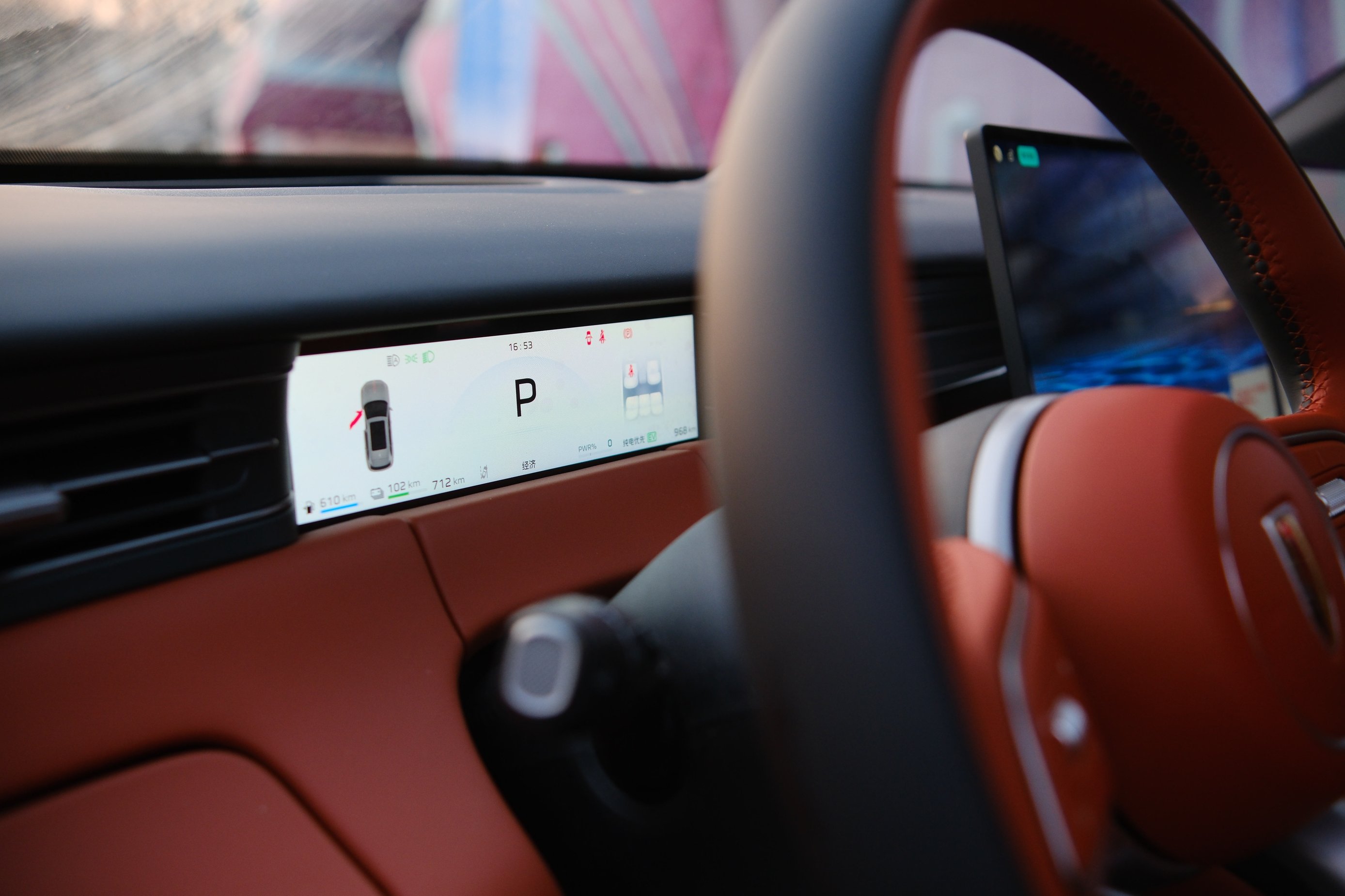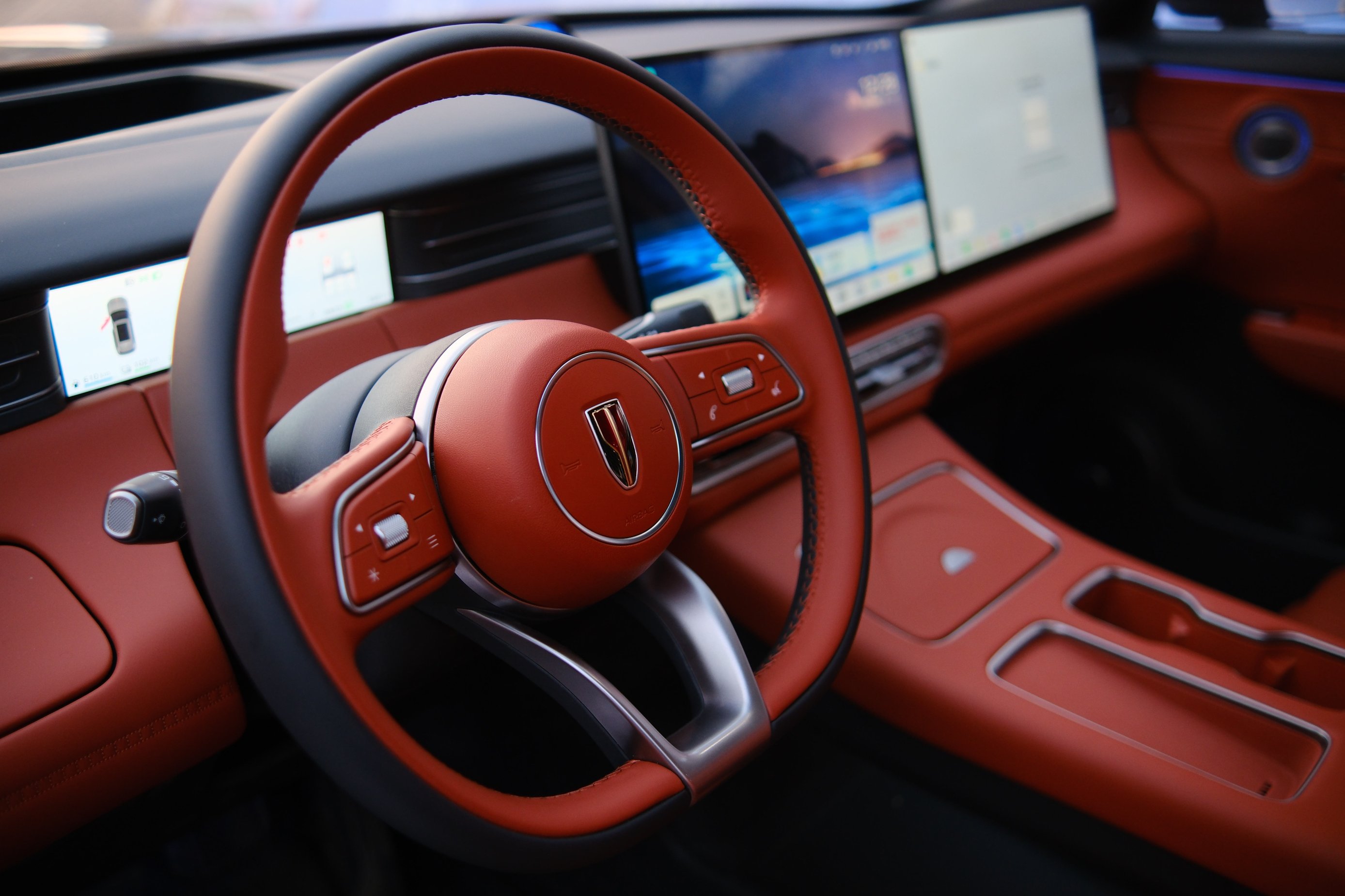 來到車內,豪華感和科技感撲面而來,車內大面積采用了真皮及軟材質包裹,觸手可及之處皆是細膩。同級領先的30吋AR-HUD,全系標配15.6+15.6吋2.5K雙聯屏、科技感拉滿。