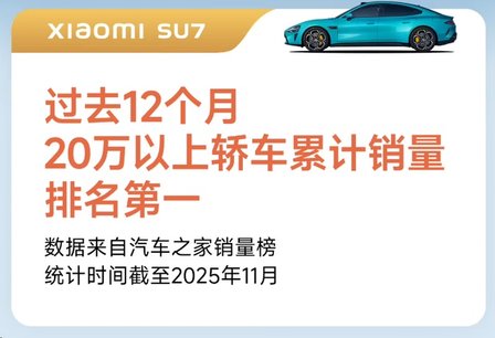 雷軍自從宣布造車以來,小米汽車熱度和銷量都是位列前茅,小米SU7在2025年拿下了「20萬以上轎車累計銷量榜」第一名。