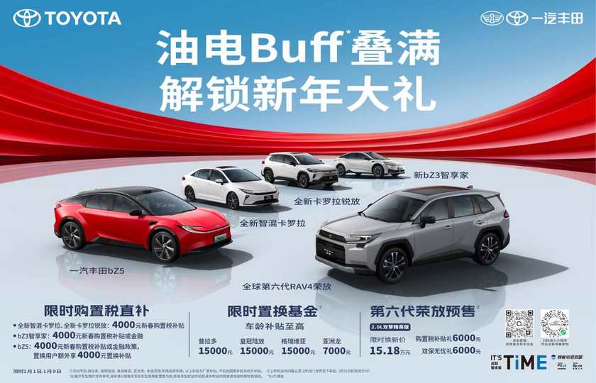 值得一提的是,2026年1月1日-1月9日,一汽豐田再推“解鎖新年大禮”,回饋新老用戶長久厚愛。