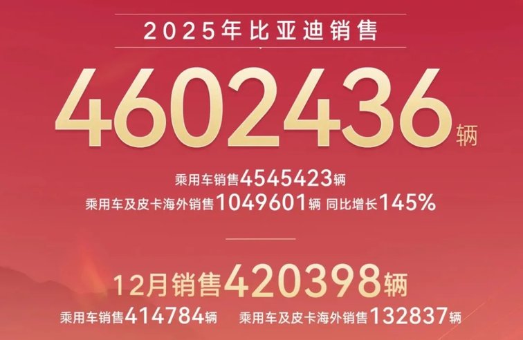 剛跨進2026年第一天,自主5強就陸續公布了2025年12月份以及全年的銷量快報,按單月銷量表現,比亞迪還是銷量冠軍,長安汽車、奇瑞集團、吉利汽車緊隨,長城汽車嚴重拖了后腿。