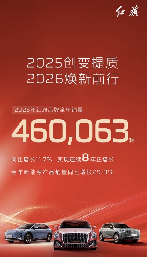 4、一汽集團自主板塊同樣表現(xiàn)突出。紅旗品牌全年銷量46.01萬輛,同比增長11.7%,實現(xiàn)連續(xù)8年正增長,新能源同比增長29.8%;奔騰品牌20萬輛,同比增長33%,其中新能源銷量17.2萬輛,同比暴增107%。新能源車已成為兩大品牌增量的主要貢獻者。