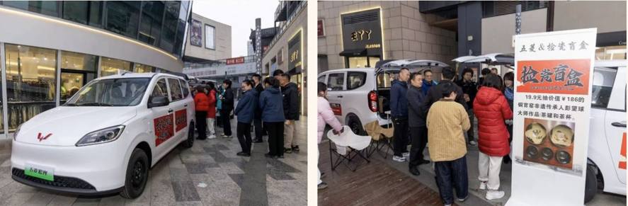 五菱之光EV是車尾箱創業的神器;而皇家小虎是速凍小吃大王,速凍食品全網銷量第一,累計服務超億次家庭用戶,年銷售額超30億,烤腸、蛋撻連續四年全國銷售第一,有自己的超級工廠,品質更可靠,標準化生產,品控更有保障。活動期間品牌還推出了免費試吃香腸的環節哦,是整個元旦銷售的人氣王!