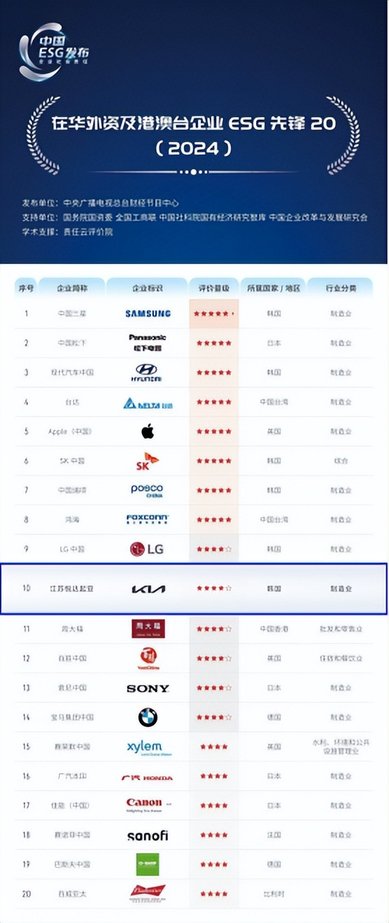 此外,江蘇悅達(dá)起亞還連續(xù)2年入圍中央廣播電視總臺(tái)“在華外資及港澳臺(tái)企業(yè)ESG先鋒”榜單前10,是榜單前10中唯一在華外資子公司企業(yè)。
