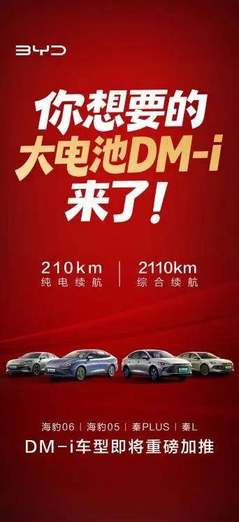 純電續航翻一倍!比亞迪將加推4款210km大電池插混車型