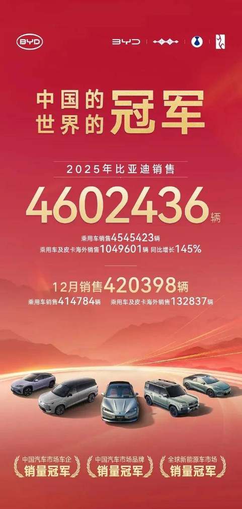 2025年,全球電動汽車產(chǎn)業(yè)迎來標志性轉(zhuǎn)折。比亞迪在保持新能源汽車總銷量全球第一的基礎(chǔ)上,其純電動車型年銷量首次超越特斯拉,問鼎全球純電動車型銷量冠軍。這不僅是企業(yè)層面的超越,更意味著中國汽車工業(yè)在全球新能源格局中地位的實質(zhì)性提升。