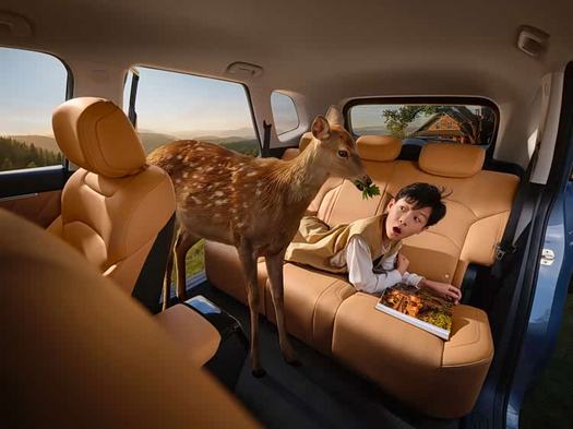 車身尺寸方面,星光560的長寬高為4745*1850*1755mm,軸距達2810mm,是6萬級市場里面重磅SUV,得房率高達83%。前排座椅可180°放平,后排靠背最大調節角度125°,座椅采用10mm厚復合皮面材質。后排座椅支持4/6分獨立放倒,放倒后可與后備廂形成純平空間,后備廂擴展容積表現出色,同時配備隱藏式儲物槽與豐富的儲物空間。