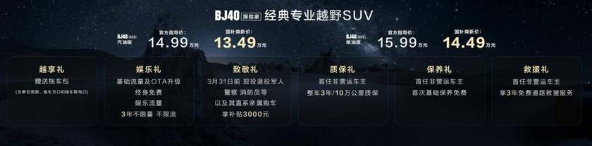 北京越野準(zhǔn)備了六重尊享禮遇,價(jià)值12000元,現(xiàn)在下訂立即享受: