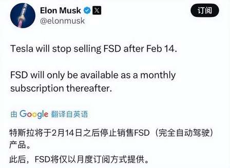 重磅官宣:特斯拉將在2月14日后停售FSD,并切換月度訂閱制