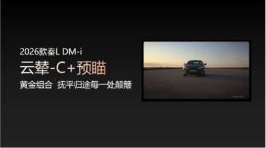 配置方面,2026款秦L DM-i長續航版搭載了天神之眼輔助駕駛系統和云輦-C智能阻尼車身控制系統與多連桿獨立后懸架,結合云輦預瞄系統,能夠提前感知并撫平路面顛簸,帶來豪華車般的底盤質感。
