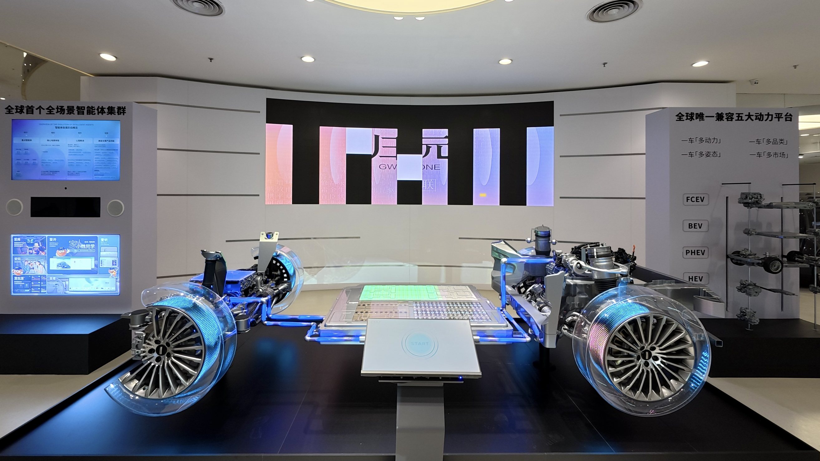 在工程實現上,歸元平臺將整車結構分解為49個核心模塊與329個共用組件,形成了高通用性的硬件基礎。其特點是宣稱兼容插電混動(PHEV)、油電混動(HEV)、純電動(BEV)、傳統燃油(ICE)及氫燃料電池(FCEV)五種動力形式。