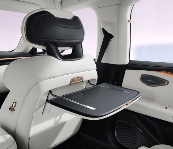 標配的全景天幕雖然觀感好,但沒給遮陽簾,夏天可能還是會有烘烤感。后排標配了一個小桌板,也標配了隱私玻璃,座椅靠背標配了電動調(diào)節(jié),還標配了老板鍵,這臺車真可以說是“標配王”。