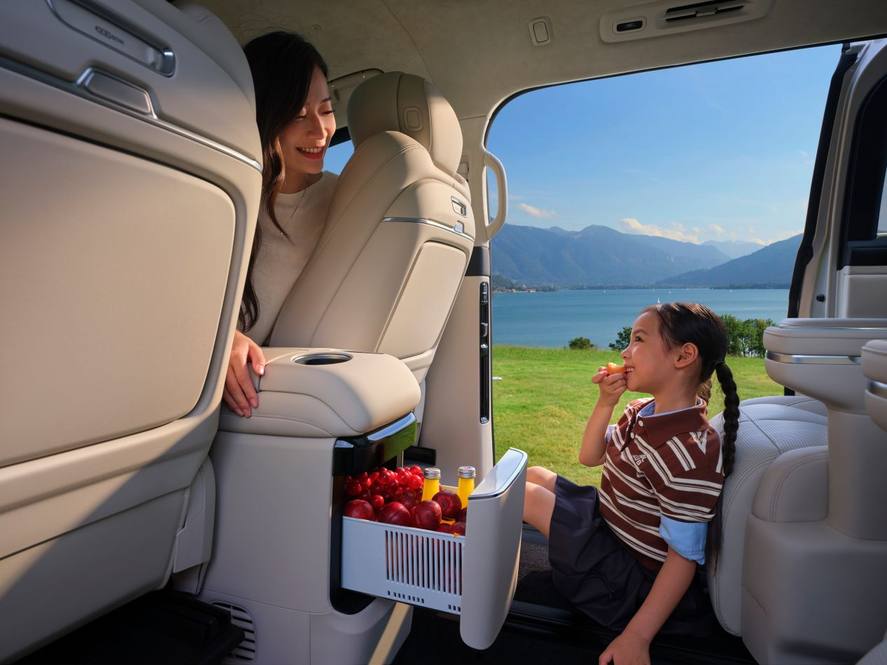 銀河V900配備11層云感SPA座椅,Nappa真皮、一二排通風、加熱、按摩配齊,三排通風、加熱,可電動調節靠背;在遠途出行或家庭露營時,27揚聲器Flyme Sound無界之聲系統配合后排娛樂巨幕,打造沉浸式移動影音廳,告別旅途沉悶;-6℃~50℃超寬溫域冷暖箱,無論是冰鎮飲品還是溫熱湯食,都能一路呵護;采用雙層夾膠靜音玻璃、主動降噪和靜音輪胎,擁有圖書館級靜謐,全環保材料座艙,搭載智能新風系統和負氧離子發生器,讓老人孩子能安全放心,充分休息。銀河V900的智能奢享配置,讓全家人的出行,無論長短途,無論動與靜,舒享都拉滿。