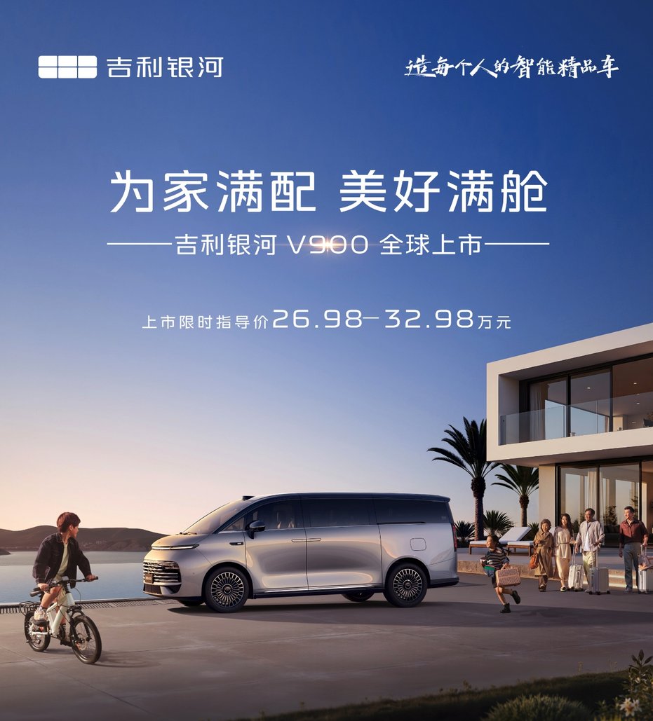 1月20日,吉利銀河V系列的首款MPV吉利銀河V900正式上市,新車定位“AI全場景家庭旗艦MPV”,提供三個版本(Pro版、Max版、金暉典藏版)可供大家選擇,限時指導(dǎo)價26.98萬元 - 32.98萬元,較此前31.98萬-38.98萬元的預(yù)售價,最高降幅達(dá)5萬元~6萬元。直接進(jìn)入了原本由騰勢D9 DM-i、魏牌高山等車型主導(dǎo)的主流新能源MPV市場。