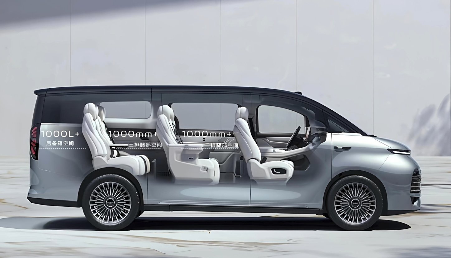 尺寸上,吉利銀河V900長寬高分別為5360/1998/1920mm,軸距3200mm。“得房率”高達(dá)91.8%,車內(nèi)有效長度近4米,獨創(chuàng)二排、三排縱向空間均超1米。