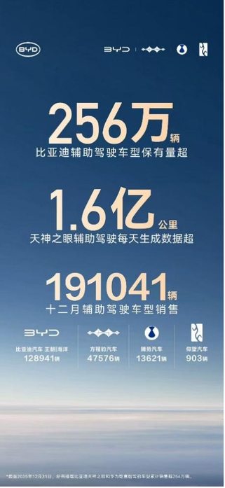 當輔助駕駛從汽車行業的 “加分項” 變成用戶購車的 “必選項”,比亞迪用實力給出了最優解。截至 2025 年 12 月,比亞迪輔助駕駛車型累計保有量超 256 萬輛,穩居中國車企第一,讓 “全民智駕” 的承諾照進現實。