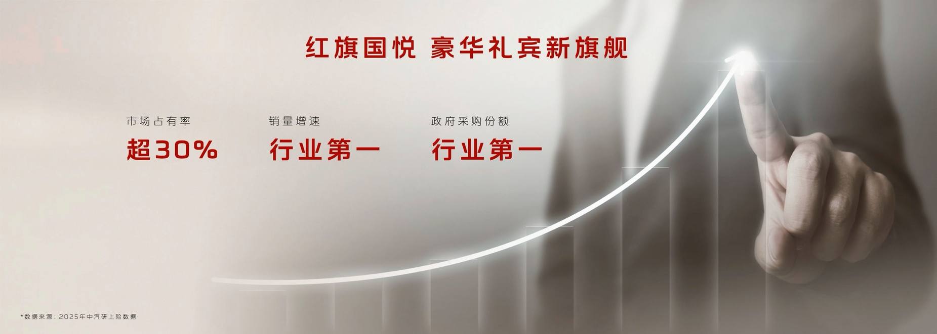 自2024年3月上市以來,紅旗金葵花國悅憑借卓越的產品力與品牌號召力持續領跑市場。截至2025年,其在細分市場占有率已突破30%,全口徑份額增速達15.2%,政府采購份額穩居行業第一,展現出強勁的增長勢頭與廣泛的用戶認可。