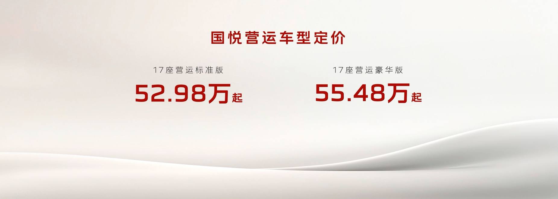 立足紅旗金葵花國悅車型的成功基礎與對營運市場的深度洞察,紅旗傾力打造的紅旗金葵花國悅營運版,是紅旗對高端商務接待、旅游租賃、政企通勤等場景專業化、品質化升級需求的精準回應。新車提供17座營運標準版和17座營運豪華版兩款車型,官方指導價分別為52.98萬起和55.48萬起,以差異化配置和豐富的個性化選裝,精準滿足不同運營商對高效可靠、持久盈利的核心訴求,同時為乘客創造“安全、尊享、舒適”的出行體驗。
