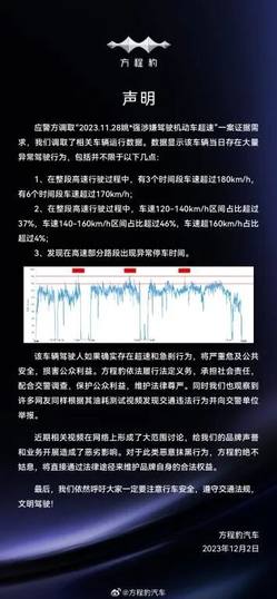 據了解,2023年12月方程豹豹5上市之際,姚*強通過抖音賬號“大秦軍陜團”發布視頻,聲稱以正常駕駛方式測試方程豹旗下車型豹5,得出百公里油耗18升的結論,在網絡上引起了大范圍的關注及討論。之后應警方調查取證需要,比亞迪調取數據顯示:測試當日車輛存在大量異常駕駛行為,高速行駛過程中有3個時段車速超過180km/h, 有6個時段車速超過170km/h,在整段高速行駛過程中,車速120-140km/h區間占比超過37%,車速140-160km/h區間占比超過46%,車速超160km/h占比超過4%。