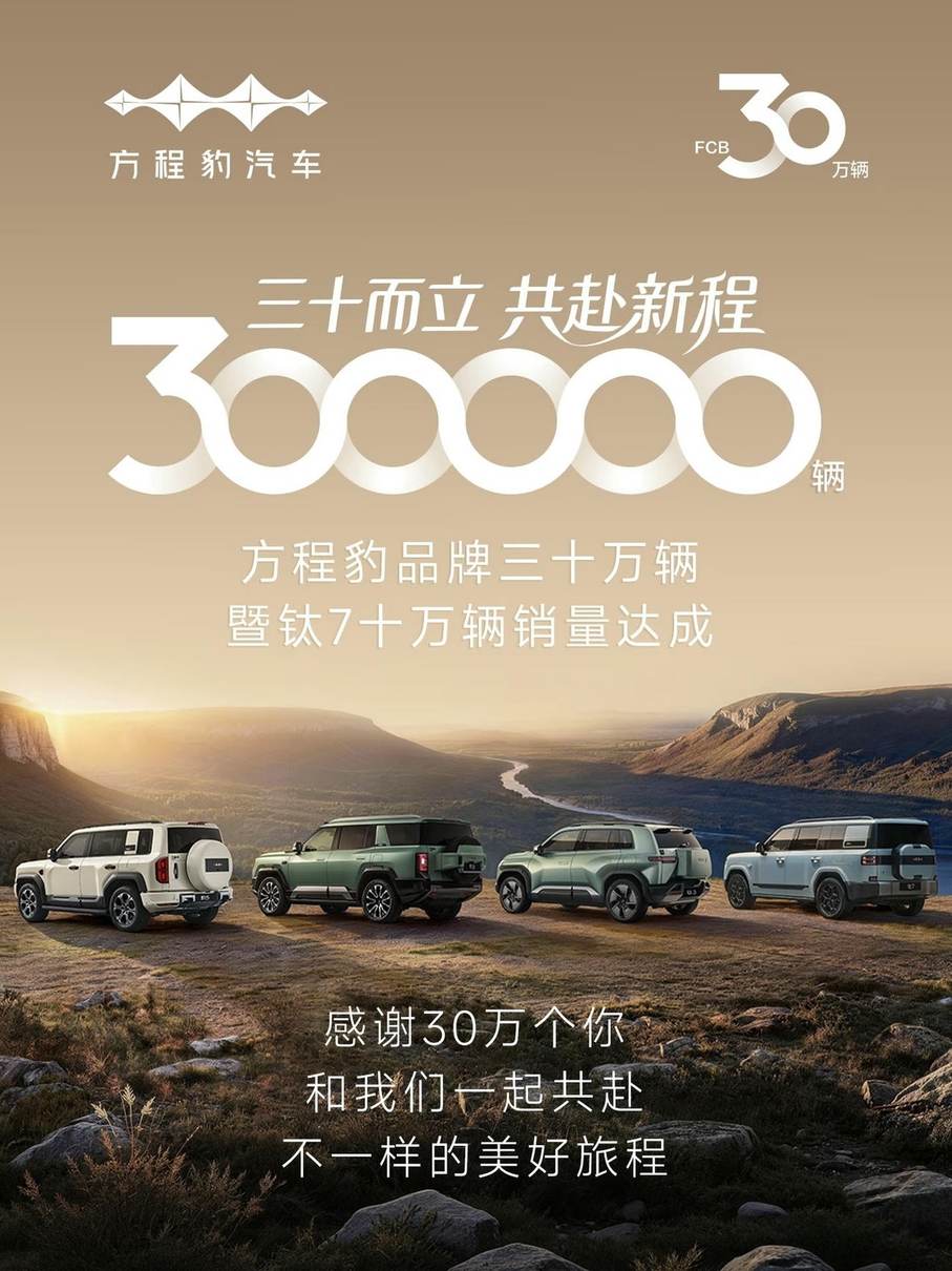 1月15日,方程豹汽車宣布品牌累計銷量突破30萬輛,不僅成為最快達成30萬輛的新勢力品牌TOP2、更是20-30萬輛新勢力品牌增速TOP1。