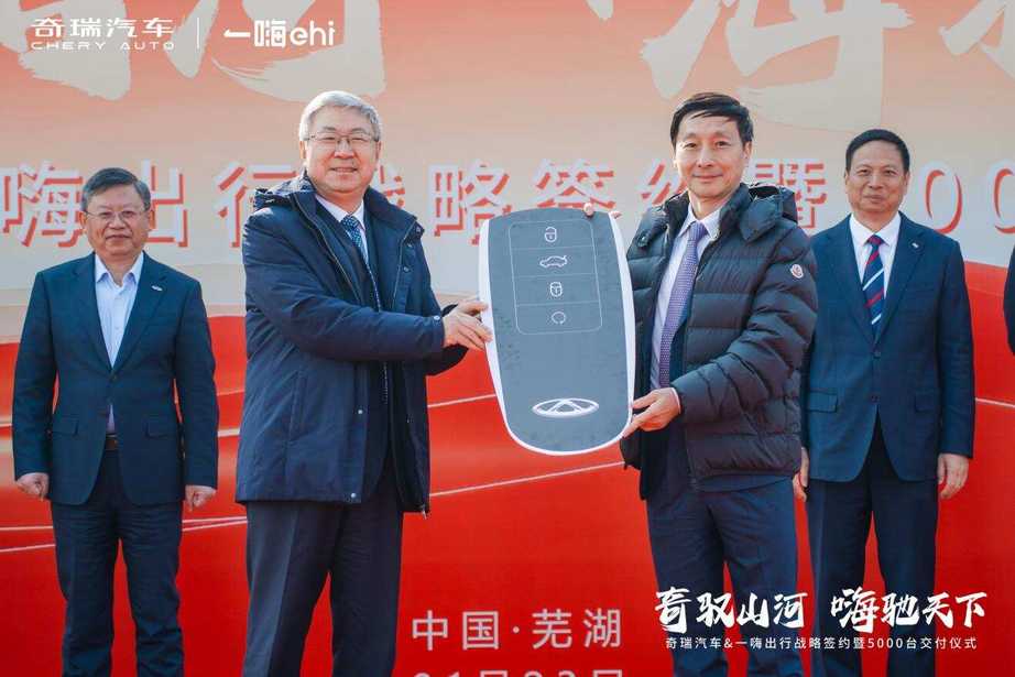 1 月23 日,“奇馭山河·嗨馳天下”奇瑞汽車&一嗨出行戰略簽約暨5000臺新車交付儀式在安徽蕪湖舉行。在現場來賓的見證下,奇瑞汽車股份有限公司董事長尹同躍,向一嗨出行創始人、董事長兼CEO 章瑞平交付鑰匙。這標志著兩家行業領軍企業繼2025 年首次合作后,進一步開啟深化戰略協作、共創智慧出行新生態的新階段。這也是奇瑞規模最大的單次新車集中交付。